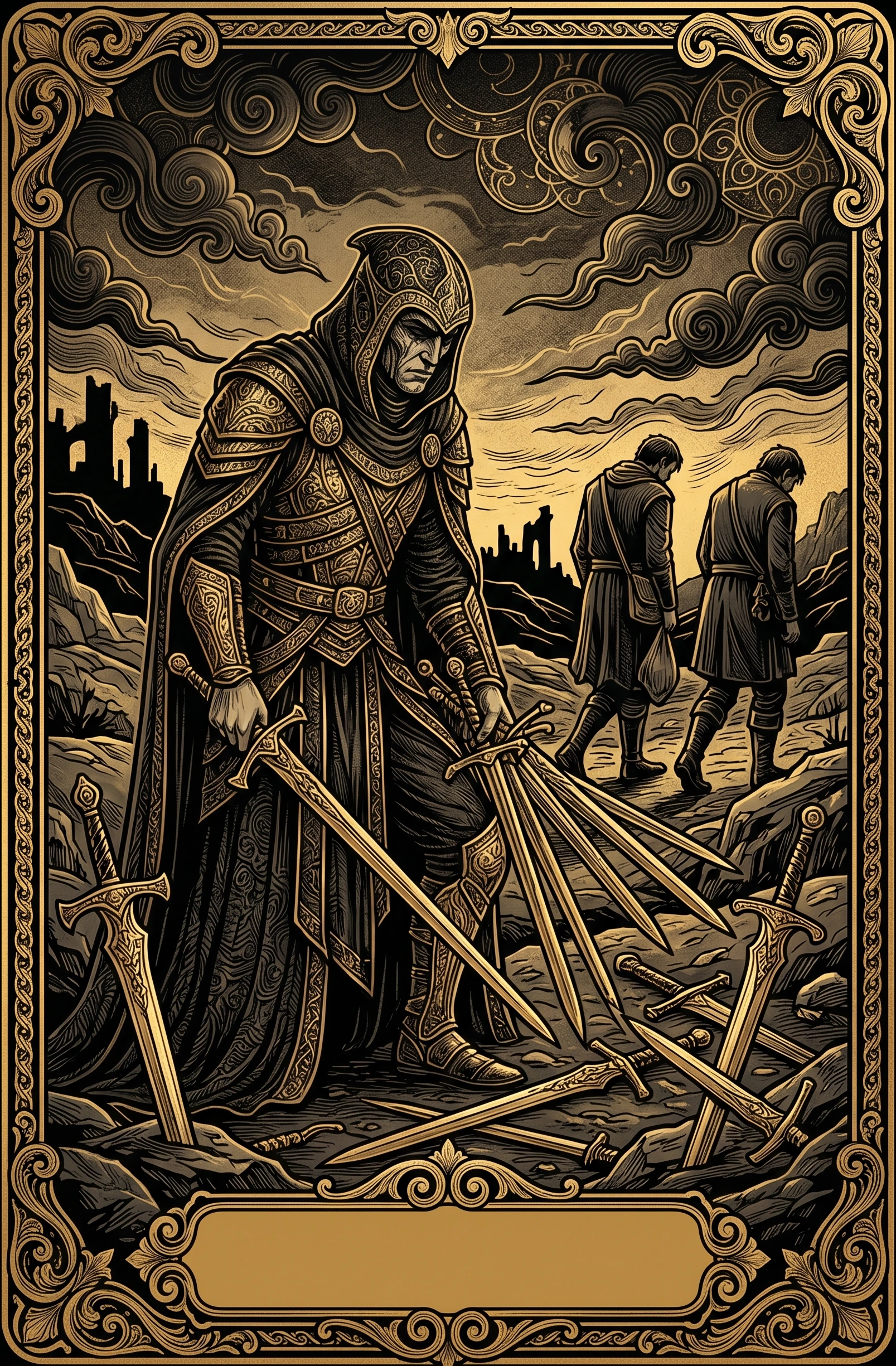 Five of Swords upright in love highlights arguments that leave resentment even when someone 'wins'. It brings thought, language, truth, conflict, and decision-making into close relationships in a way that matches the card's stage of friction, disruption, and the test that exposes weakness. Healthy progress comes from naming what is real, responding consistently, and letting connection develop through behavior rather than fantasy alone.
