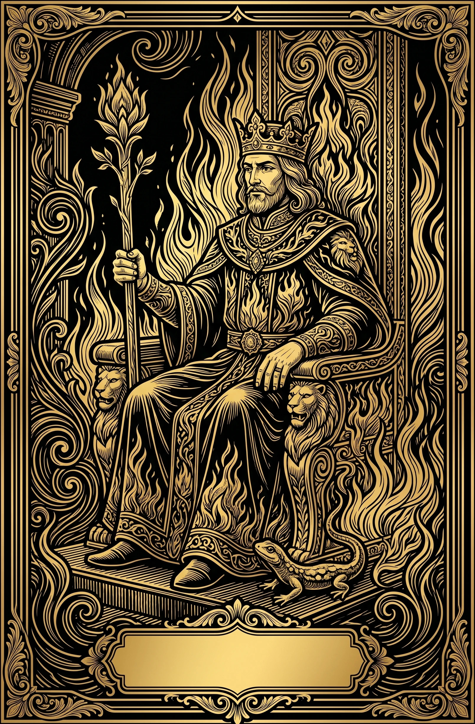King of Wands upright in love highlights strong attraction mixed with the need for relational maturity. It brings action, desire, confidence, and creative propulsion into close relationships in a way that matches the card's stage of outward authority, leadership, and responsible command. Healthy progress comes from naming what is real, responding consistently, and letting connection develop through behavior rather than fantasy alone.