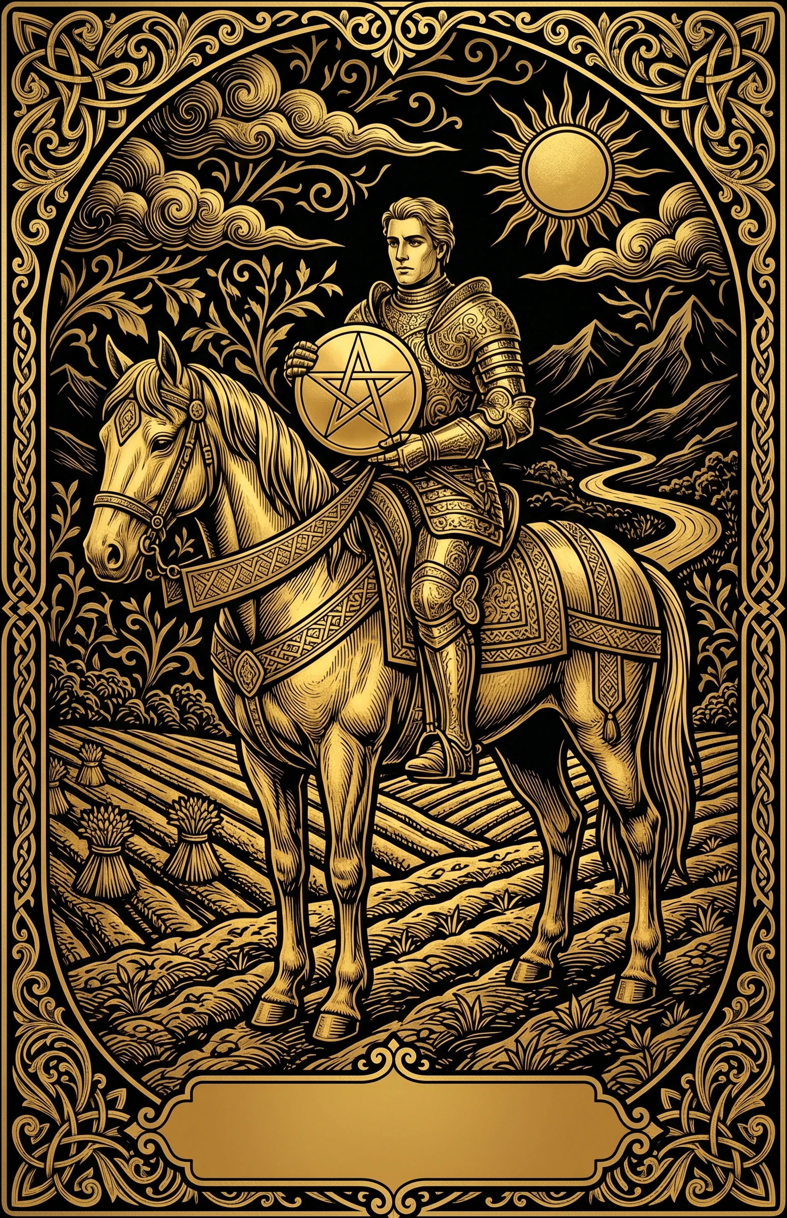 Knight of Pentacles upright in love highlights slow but trustworthy commitment built through consistency. It brings work, money, body, routine, and long-term material reality into close relationships in a way that matches the card's stage of pursuit, movement, and testing conviction through action. Healthy progress comes from naming what is real, responding consistently, and letting connection develop through behavior rather than fantasy alone.