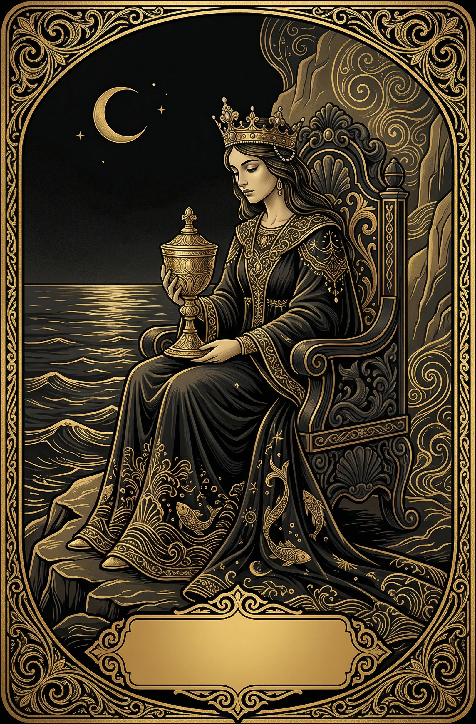 Queen of Cups upright in love highlights empathic intimacy and emotionally mature receptivity. It brings emotion, intimacy, imagination, and the relational field into close relationships in a way that matches the card's stage of inner mastery, attunement, and sustained stewardship. Healthy progress comes from naming what is real, responding consistently, and letting connection develop through behavior rather than fantasy alone.